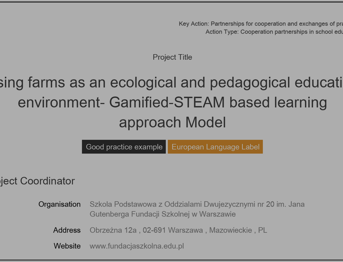 We are awarded by EU as Good Practice